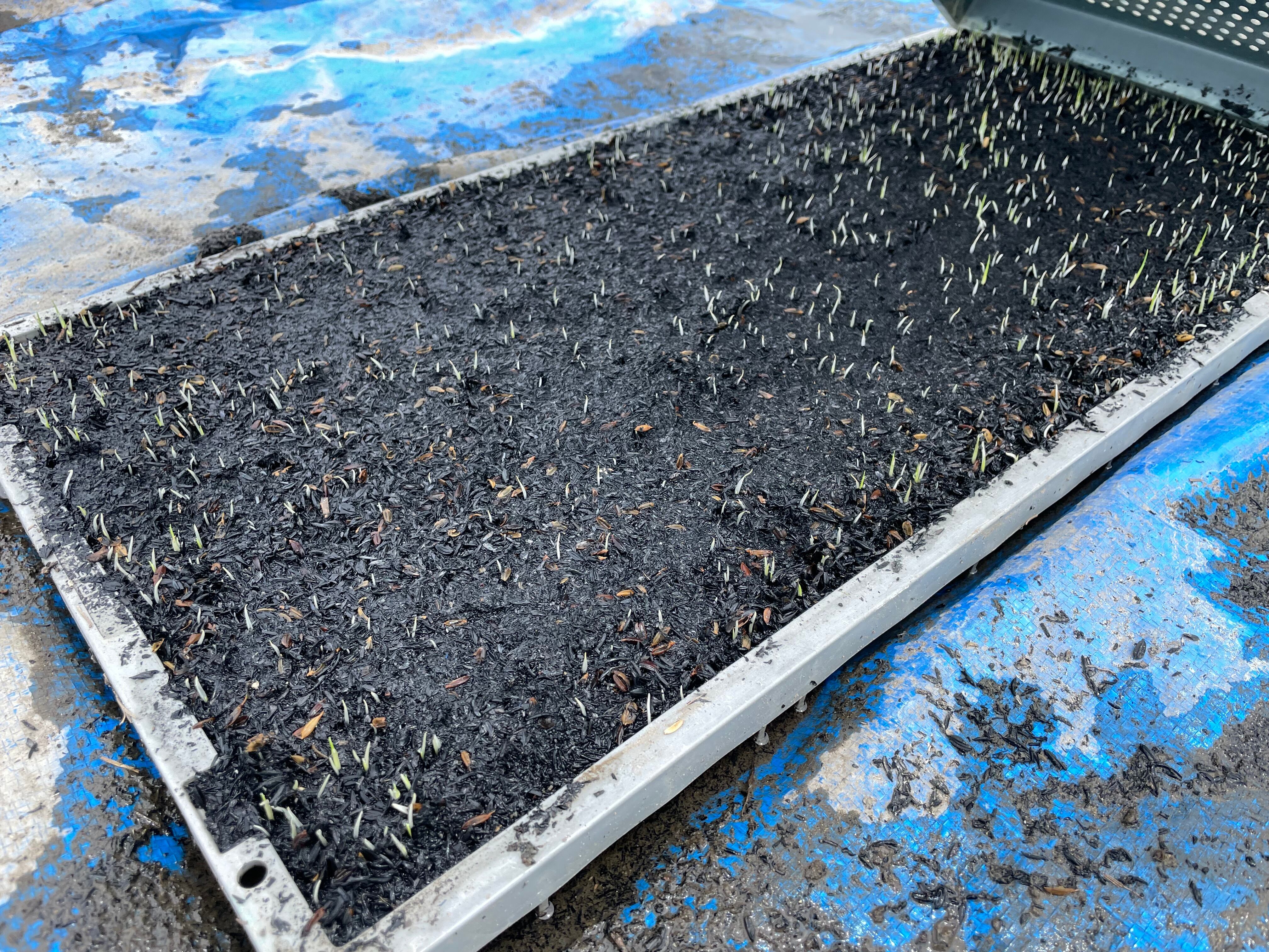 前年の籾殻を燻炭にして、それのみを苗箱に敷き詰め、自家採取した種籾を蒔いて苗を作っています。